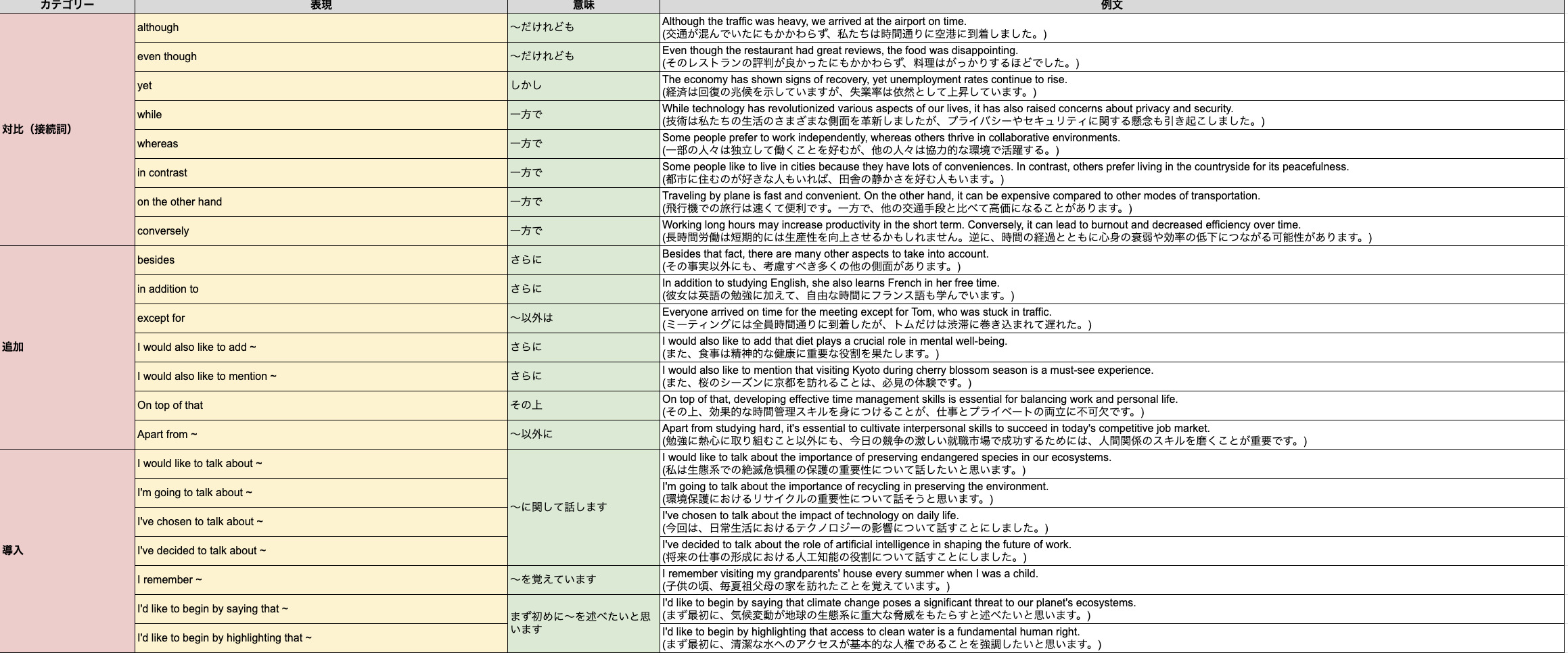 - 文と文をスムーズにつなぐ!スピーキングリンキングフレーズ集